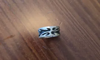 Anillo de acero con un diseño grabado. - Color plateado y negro. - Diseño moderno.