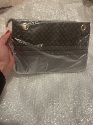 Elegante bolso Coach de estilo vintage. Las tiras (como se ve en la foto) están algo desgastadas pero no rotas y no afectan a la estructura del bolso. - Diseño con el monograma clásico de la marca. - Detalles en piel brillante. - Asas con anillas metálicas.