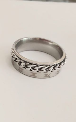 Anillo de acero inoxidable para hombre con diseño de cadena romana. Es un anillo giratorio, elegante y moderno. No negociable - Material: Acero inoxidable. - Estilo: Cadena romana. - Diseño giratorio. Talla 29