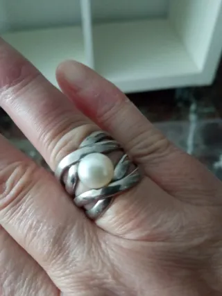 Elegante anillo de la marca Tous con un diseño moderno y una perla central. - Material: Plata - Color: Plateado y blanco