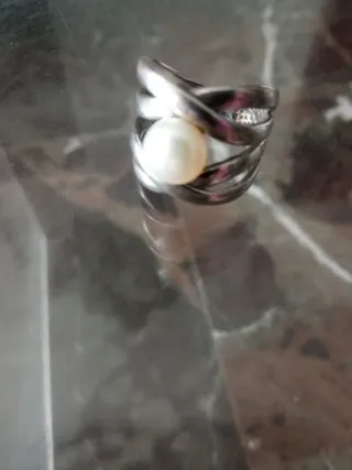 Anillo de plata 925 ajustable con perla 12,8 mm color cobre + circonitas (CZ) Descripción: Anillo ajustable de plata de ley 925 con perla grande color “brown/copper” (aprox. 12,8 mm, forma button/off-round) y circonitas (CZ) alrededor en tono verde y transparente (ver fotos). Acabado elegante, ideal para evento o regalo. • Material: Plata 925 • Piedra principal: Perla color cobre (12,8 mm aprox.) • Piedras secundarias: CZ (circonitas)