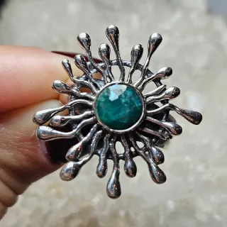 Anillo Plata 12 Esmeraldas Talla brillante,unico!