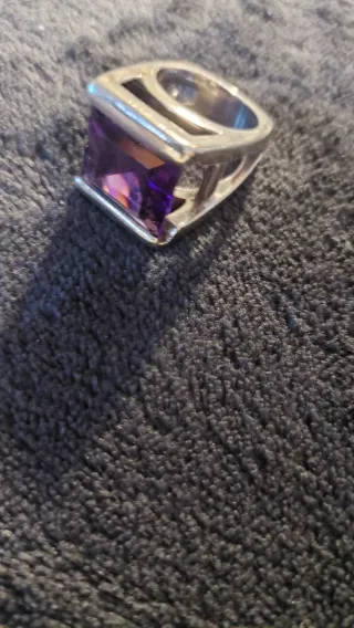 Anillo de plata de ley con un diseño abierto y una piedra de amatista. - Diseño de espiral. - Piedra central de amatista. - Plata de ley.