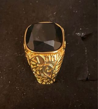 Elegante anillo de plata con una piedra central de onyx negro. Un diseño clásico y sofisticado. - Anillo de plata. - Piedra central de onyx negro. - Diseño con detalles texturizados. Es una talla entre 10 y 11 según la guía de la segunda foto.