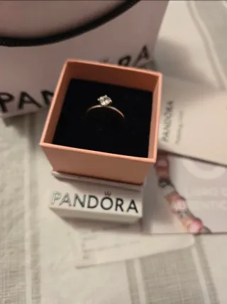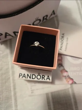 Anillo de plata de la marca Pandora con un diseño delicado. - Forma de corazón. - Piedra central de color rojo.