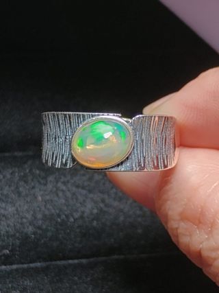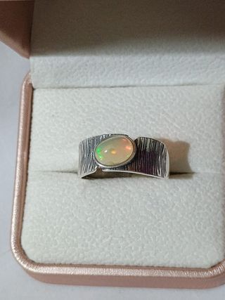 Precioso anillo de plata con una hermosa piedra de ópalo blanco y mide 7*9mm. Es una pieza elegante y delicada, ideal para cualquier ocasión. - Anillo de plata de ley 925. - Ópalo blanco brillante. - Diseño moderno y sofisticado. - Talla única (ajustable).