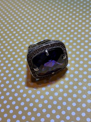 Precioso anillo de plata con una piedra de color moradoí.Es una pieza única y elegante,he puesto una talla pero no sé qué talla es. - Anillo de diseño ovalado. - Metal: Plata. - Piedra central de color morado.