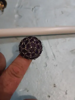 Anillo esfera piedras moradas y plata