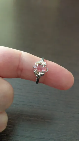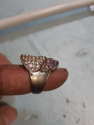 Anillo con piedras rosas y plateadas