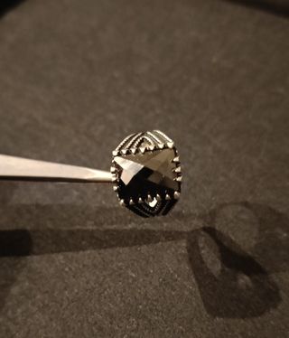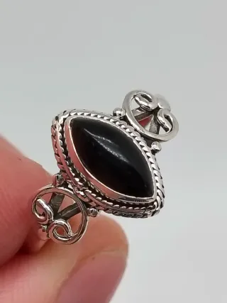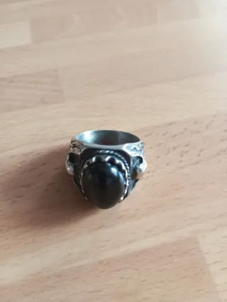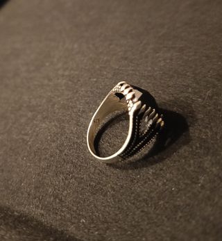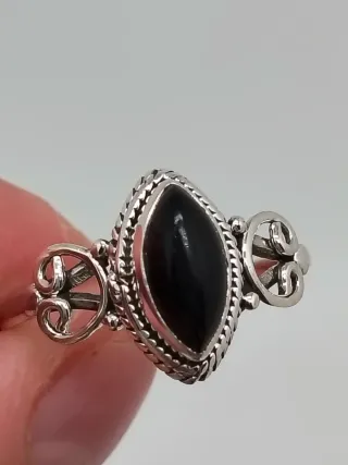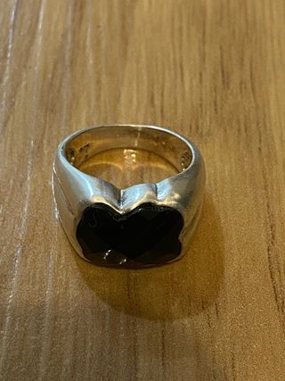Anillo plateado con piedra negra.