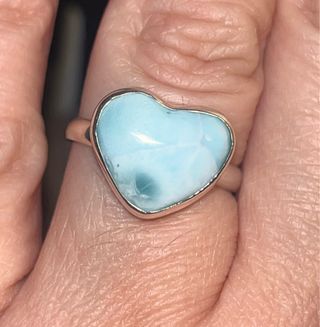 Anillo Plata 925 Corazón Larimar Talla 21