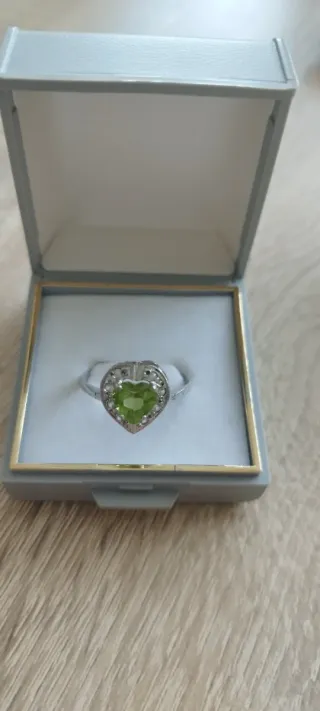 Anillo Plata Corazón Olivina Circonitas