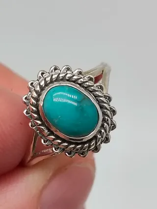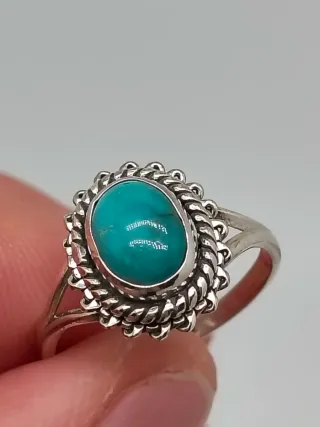 Anillo con una hermosa turquesa natural engastada en plata de ley 925. - Diseño elegante con detalles. - Piedra central ovalada. - Talla 13/53 16,9 milímetros