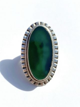 Anillo de Plata piedra Ágata Verde Ovalada