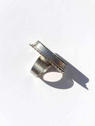 Precioso anillo de plata de ley con una gema central. Antes de preguntar mire las fotografías por favor. Ajustable hasta cierto punto. - Diseño con piedra luna. - Acabado en plata pulida.