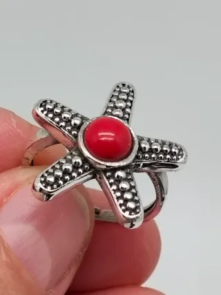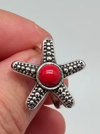 Anillo Estrella de Mar Plata 925 y Coral