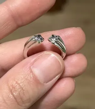 Anillo de plata con diseño de estrella. - Diseño abierto y ajustable. - Detalle de pequeñas piedras brillantes en la estrella.