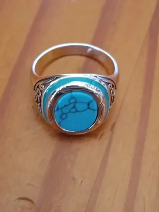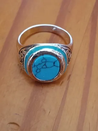 Precioso anillo antiguo con un diseño intrincado y una piedra central. - Detalles en plata. - Piedra central de color turquesa.