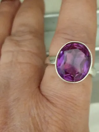 Anillo vintage con una hermosa amatista natural. - Montura de plata. - Piedra amatista de corte ovalado.NO ACEPTO DEVOLUCIÓN.