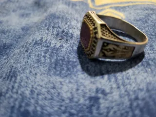 Precioso anillo antiguo con un diseño único. - Detalle de estrella con piedra morada central. - Banda con textura de cuentas.NO ACEPTO DEVOLUCIÓN