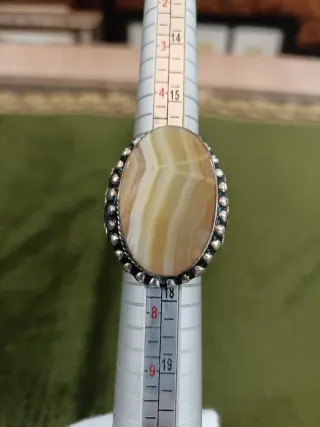 Anillo Plata Antigua Piedra Beige Talla 18.1 mm