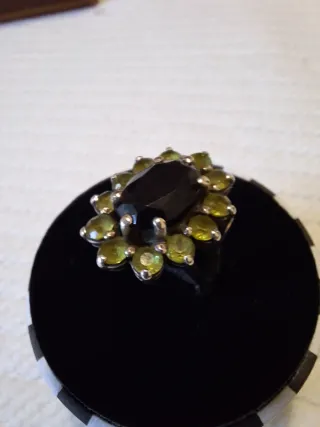 Anillo vintage plata piedras verdes
