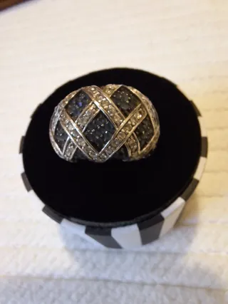 Sortija de plata con circonitas negras y blancas.