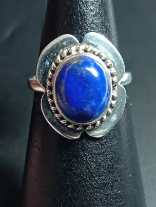 Anillo de plata de ley con un diseño floral y una piedra central de lapizlazuli - - Piedra de lapizlazuli - Plata de ley.