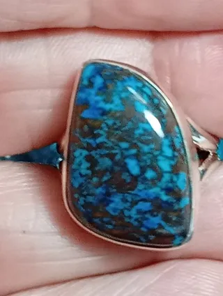 Anillo de plata de ley con una llamativa piedra crisocola y jaspe rojo - Diseño único y elegante. - Montura de plata de ley.