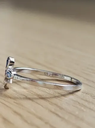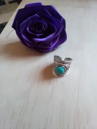 Anillo de plata de ley con cristal celeste -no se que piedra es-. Nuevo.