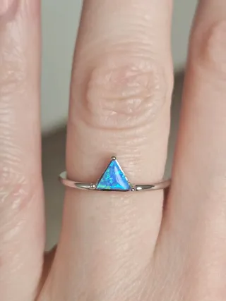 Anillo de plata de ley 925 con piedra ópalo azul en forma triangular. Diseño delicado, fino y muy elegante • Plata de ley 925 (ver foto sello autenticida • Piedra azul ópalo brillante • NUEVO con caja • Más anillos en mi perfil, ¡entra!
