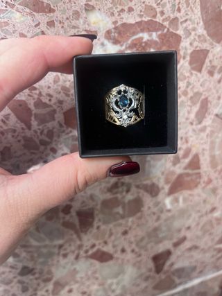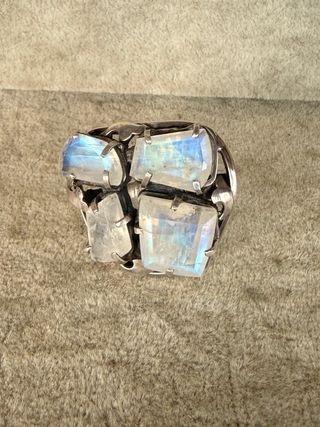 Anillo de plata de ley 925 con un diseño único y piedras de luna. - Elaborado en plata de ley 925. - Incorpora varias piedras de luna con destellos azules espectaculares - Montura con detalles intrincados. talla 16/17 envio a toda españa costo mucho mas en la joyeria
