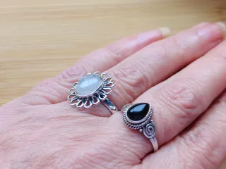Conjunto de anillos de plata de ley 925 con detalles en diferentes piedras - Diseño elegante y moderno. - Plata de ley 925. - Piedras de diferentes modelos y tallas Aguamarina, piedra luna, labradorita, granate y cuarzo ahumado Envio a toda españa
