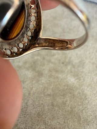 Precioso anillo de plata de ley 925 con ojo de tigre con unos colores muy bonitos. Última unidad y talla disponible Mide 18,5mm - Piedra central de ojo de tigre con tonalidades marrones y doradas #ojodetigre #anilloplatadeley #anillo #plata Envío rápido