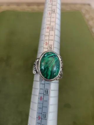 Elegante anillo de plata de ley con una piedra de malaquita natural. Su diseño clásico lo hace perfecto para cualquier ocasión. - Anillo de plata de ley. - Piedra central de malaquita con vetas verdes.