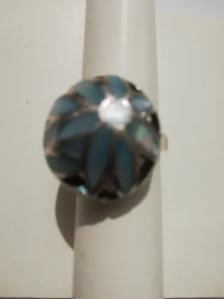 Sortija azul, plata de ley con diseño madreperla