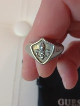 Anillo Guess Hombre Flor de Lis Plata Nuevo