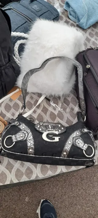 Bolso vintage Guess negro y plateado