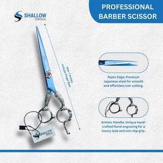 Tijeras profesionales de barbero de 7 pulgadas, fabricadas con acero japonés de primera calidad para un corte suave. Destacan por su diseño artístico grabado a mano que aporta un toque de lujo y exclusividad. Cuentan con anillos interiores extraíbles para un ajuste personalizado y máxima comodidad durante el uso prolongado. Hoja de filo de navaja ideal para técnicas de corte avanzadas. Nuevo a estrenar.