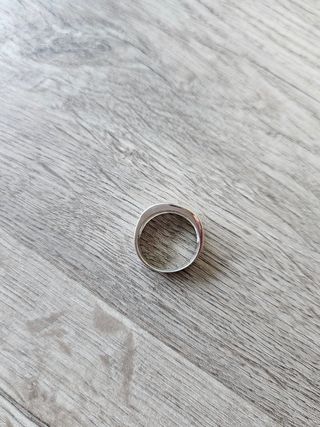 Anillo de forma cuadrada de color plateado. El anillo es de acero quirúrgico. No se oxida, no se pone verde. Resistente y aprueba de agua. Tallas disponibles: 8 (57 mm), 9 (60 mm), 10 (62 mm), 11 (65 mm). Envío seguro por Wallapop.
