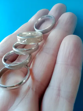 Conjunto de 5 alianzas de plata. Plata 925. - Diseño liso y elegante. - Acabado pulido. - Variedad de estilos.