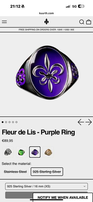 Anillo Kuurth con diseño Fleur de Lis en color morado y detalles plateados. Material: Plata de ley 925. - Diseño: Fleur de Lis. - Color principal: Morado. - Material: Plata de ley 925. - Talla: 18,5 mm ().