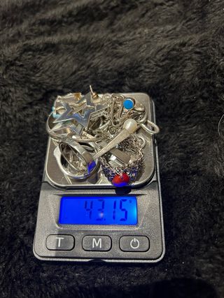 Anillo plata de ley con piedras color turquesas y chispitas Talla 13 16 euros Anillo plata de ley con dos piedras azules y blancas 12 euros Anillo Aro plata de ley liso Talla 14 12 euros Anillo de caballero plata de ley macizo con hilos de plata Talla 24 25 euros