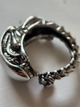 Anillo con un diseño llamativo que combina tonos dorados y plateados. - Banda ancha con acabado texturizado. - Borde interior liso en tono plateado.