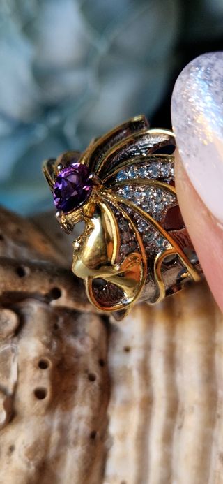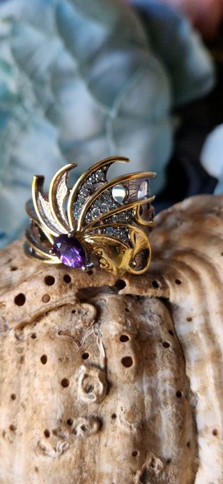 Anillo colección trampantojo mujer realizado en plata de ley amatista lágrima. Topacios azules según su posición ves dos cosas mujer y viento disponemos de tres tallas. 14. 16 y. Nuestros anillos son realizados a mano
