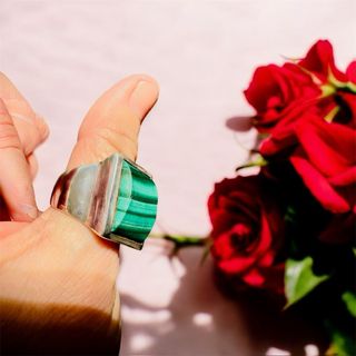 Sello para hombre o mujer de plata 925 con una incrustación de la gema Malaquita. Origen de Brasil, comprado allí. Tamaño 20,0 mm / 23