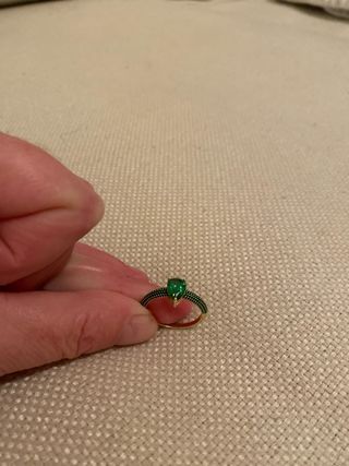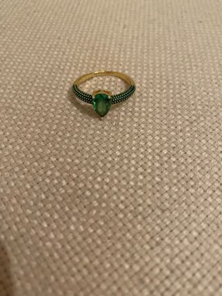 Elegante anillo con una piedra verde ovalada engastada en plata. - Diseño clásico y atemporal. - Montura de plata. - Piedra central de color verde intenso.