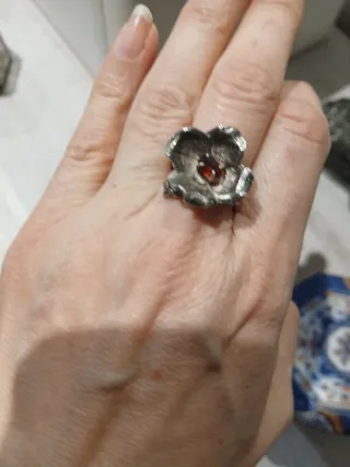 Anillo Plata Flor vintage color ámbar