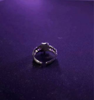 Anillo color plateado abierto, adorno silueta osito,brillo. Precio - 1,50 euros.