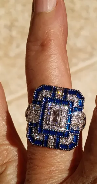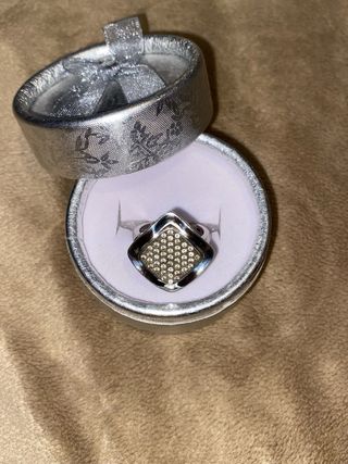 Anillo de plata 925 con forma de rombo y multipiedras. Es muy bonito y está muy bien cuidado, no tiene ningún arañazo. Es talla 16.5mm/17mm.